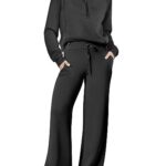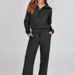 50 reviews for ANRABESS Women 2 Piece Outfits Sweatsuit Set 2023 Fall Trendy Oversized Quarter Half Zip Sweatshirt Wide Leg Sweatpant Lounge Matching Sweat Set Athletic Tracksuit Travel Clothes 1088heise-M