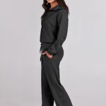 ANRABESS Women 2 Piece Outfits Sweatsuit Set 2023 Fall Trendy Oversized Quarter Half Zip Sweatshirt Wide Leg Sweatpant Lounge Matching Sweat Set Athletic Tracksuit Travel Clothes 1088heise-M