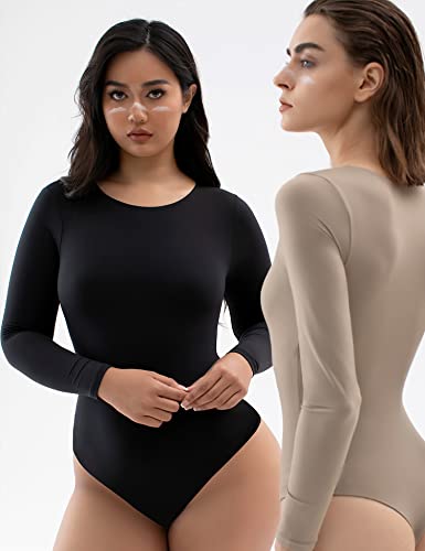 PUMIEY Bodysuits For Women Long Sleeve Tops Jet Black Medium