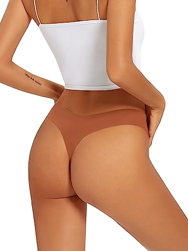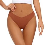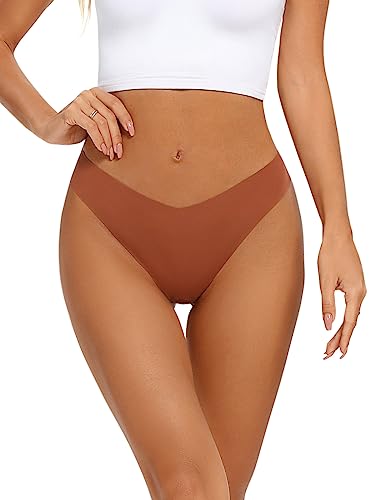 tichers Seamless Thongs for Women No Show Thong V-waisted Stretch Breathable Sexy Panties Underwear 6 Pack